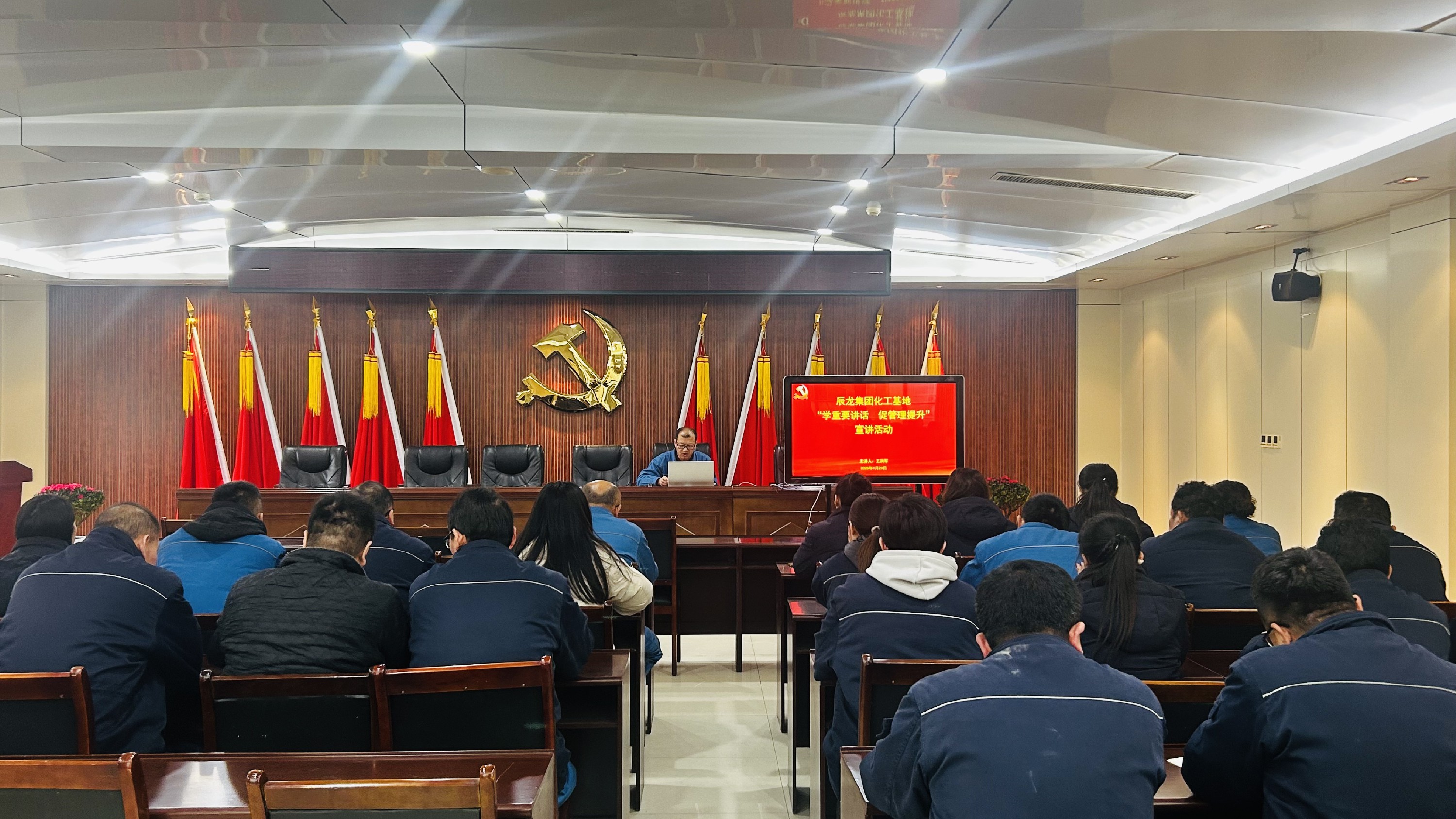 1月23日下午,化工基地黨群綜合部部長、公用工程黨支部書記王洪軍同志以“學重要講話,促管理提升”為題開展宣講活動。公司干部職工20余人參加。
